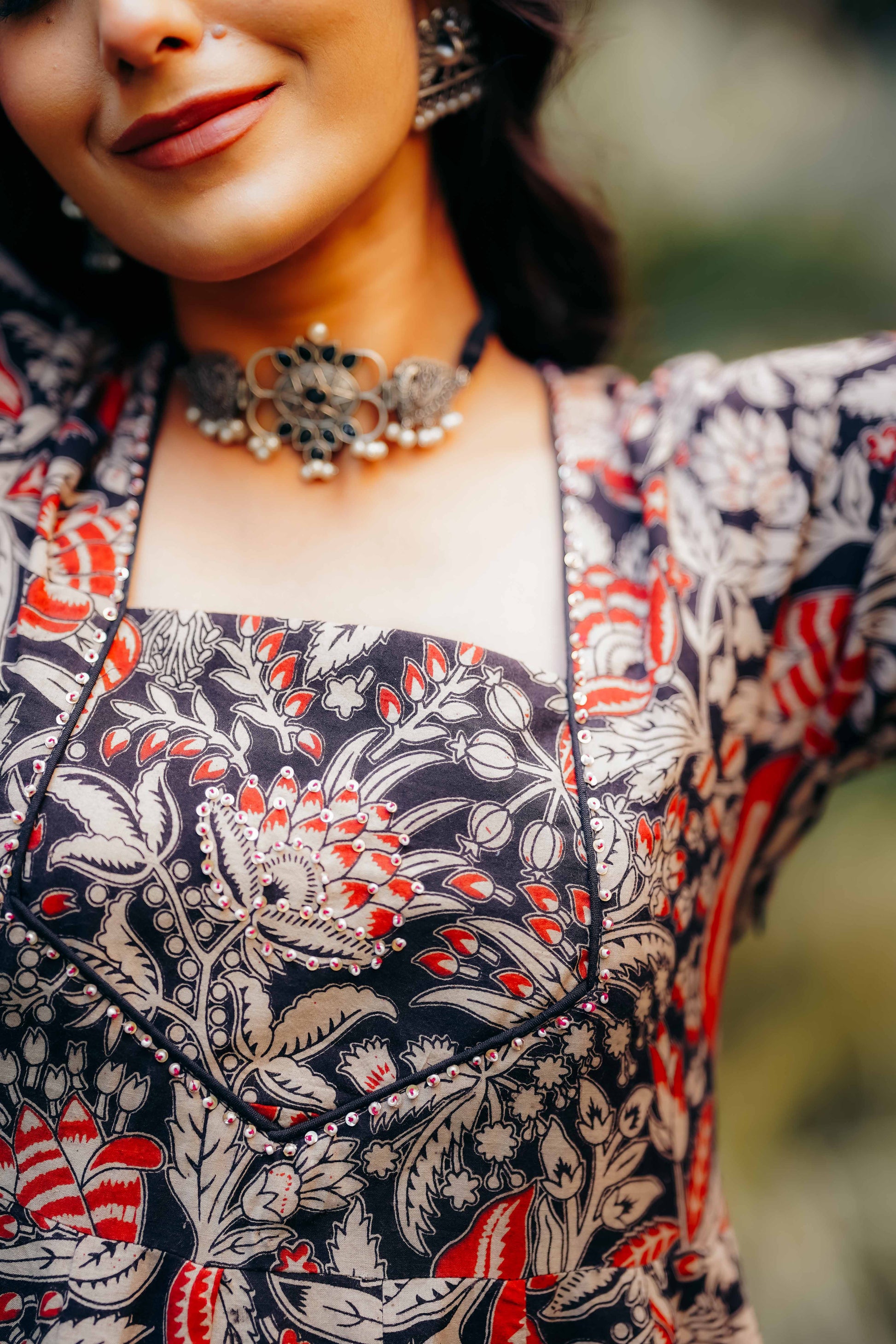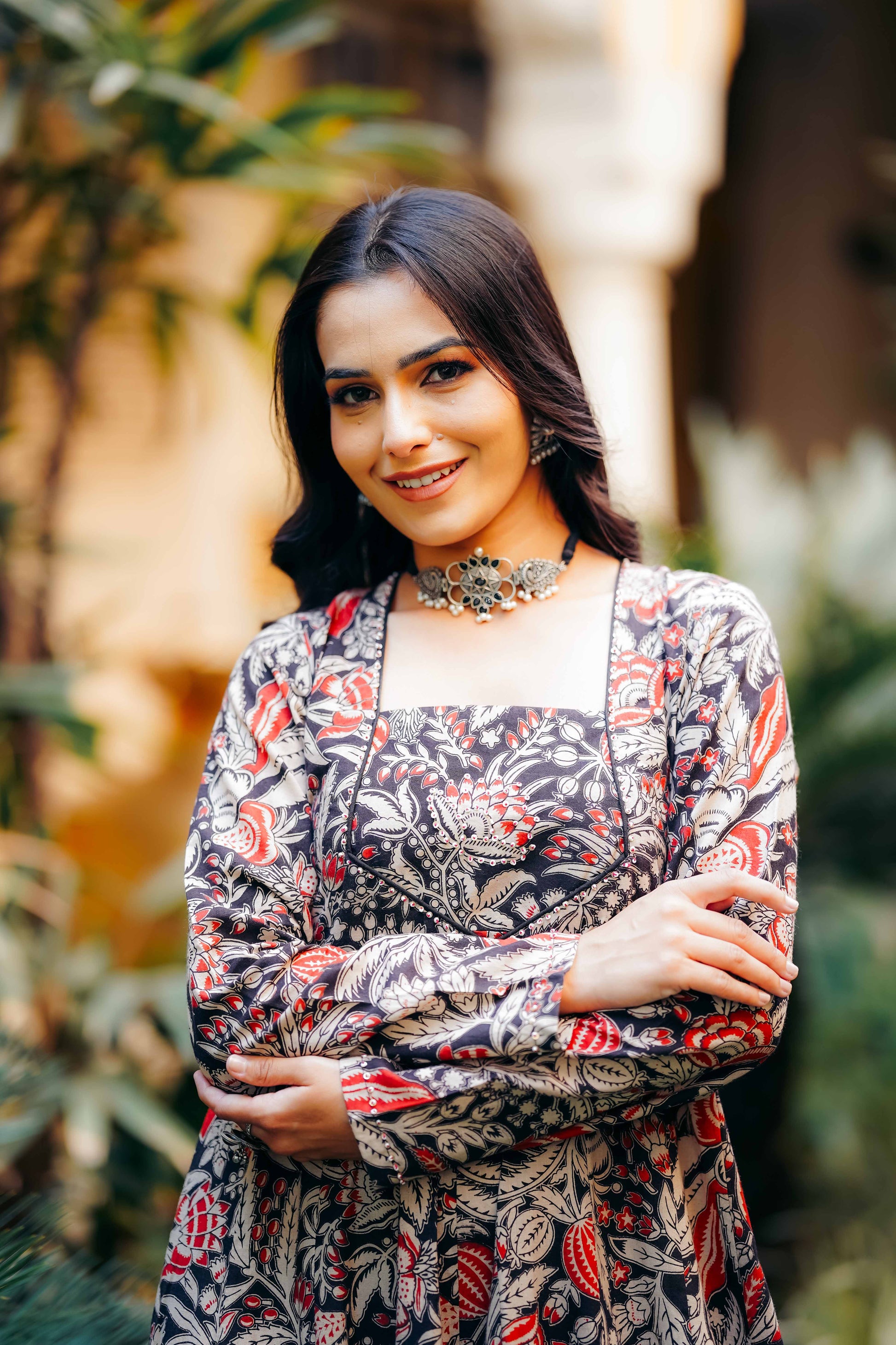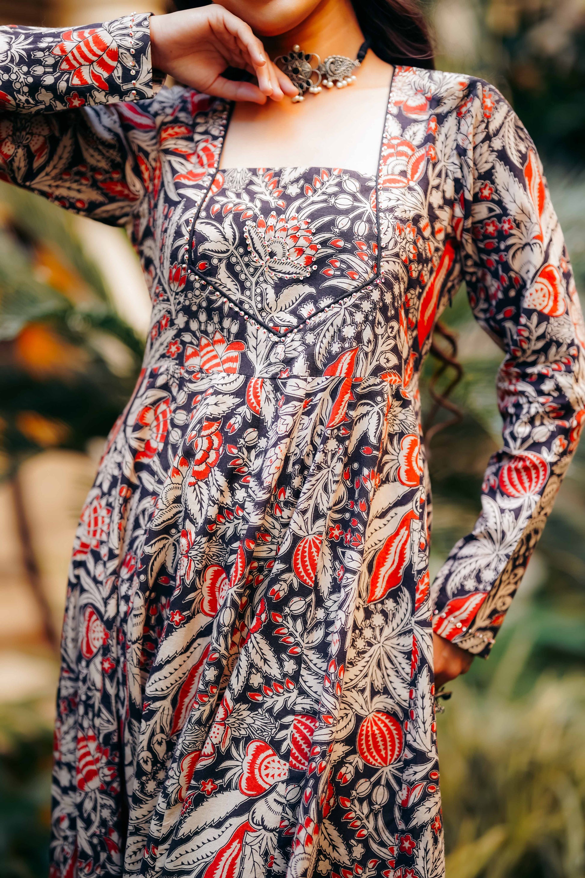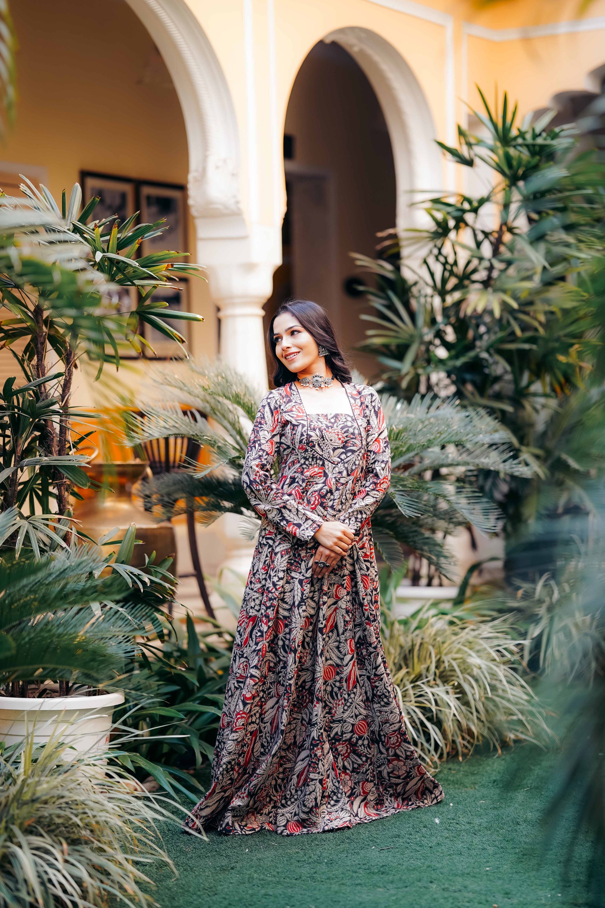 Nazakat is a cotton Anarkali suit designed with elegance in every detail. Featuring full sleeves and delicate hand embroidery on the neckline, this timeless silhouette brings together comfort and sophistication. Perfect for festive occasions, family gatherings, or everyday ethnic charm.