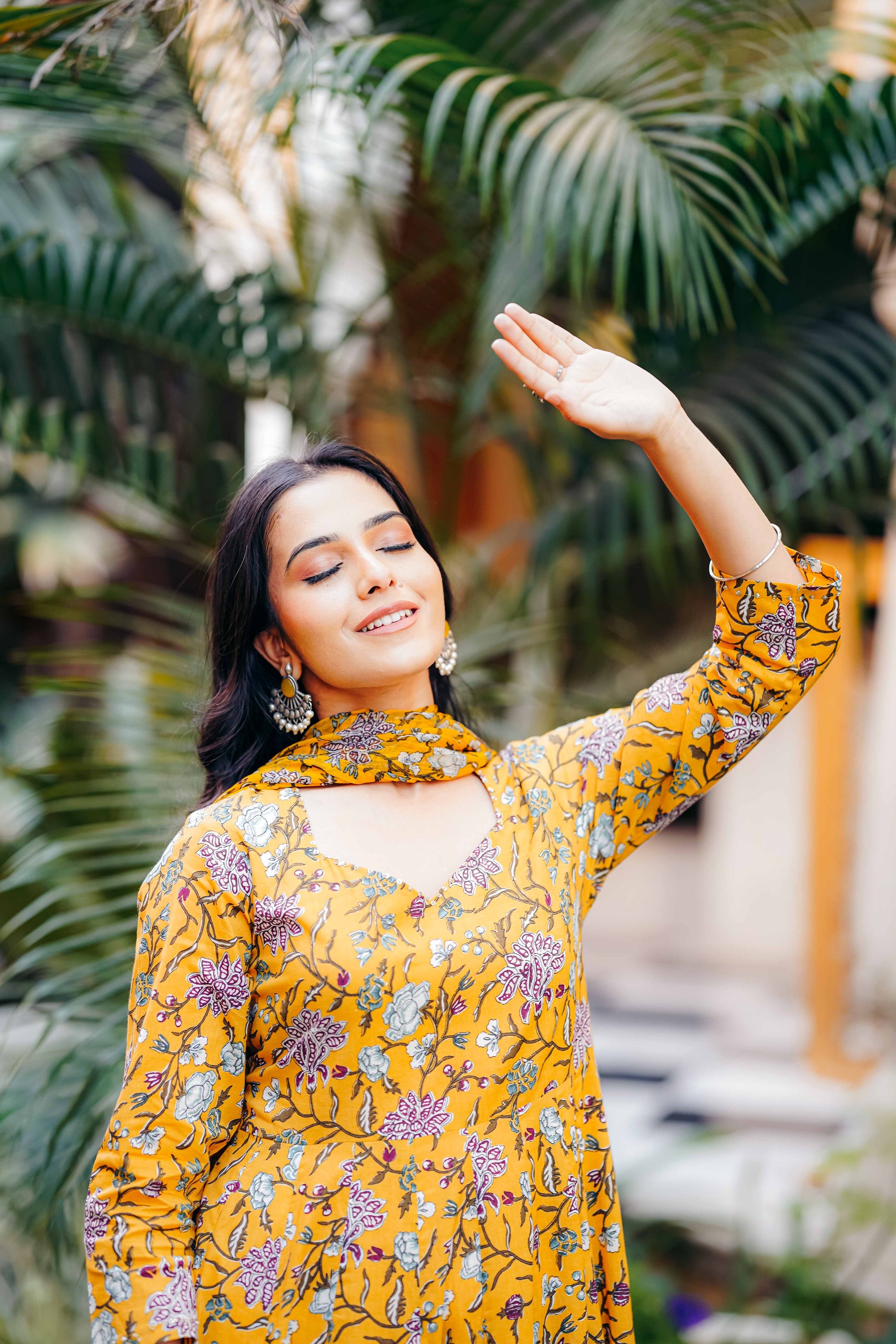 Noor is a cotton Anarkali suit paired with a soft chiffon dupatta. Designed with 3/4th sleeves and enhanced with delicate hand embroidery on the neckline and sleeves, this piece combines comfort with timeless style. Perfect for festive occasions, family gatherings, or special evenings.