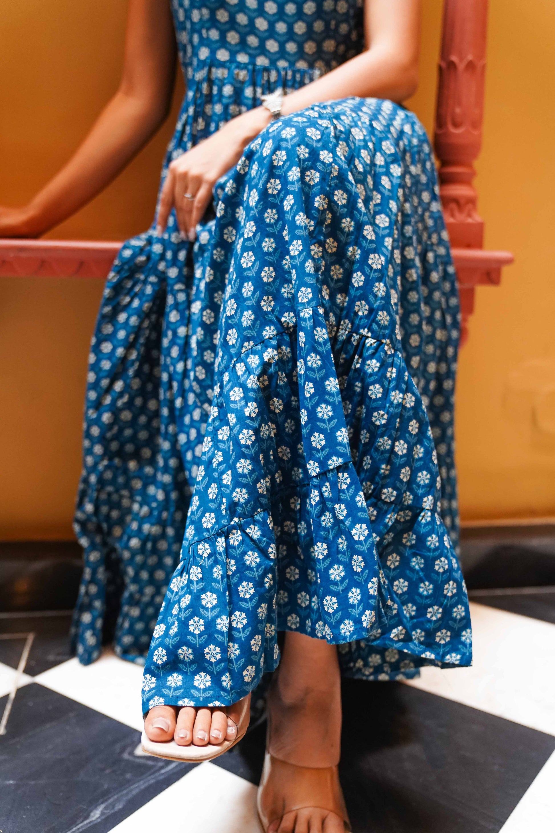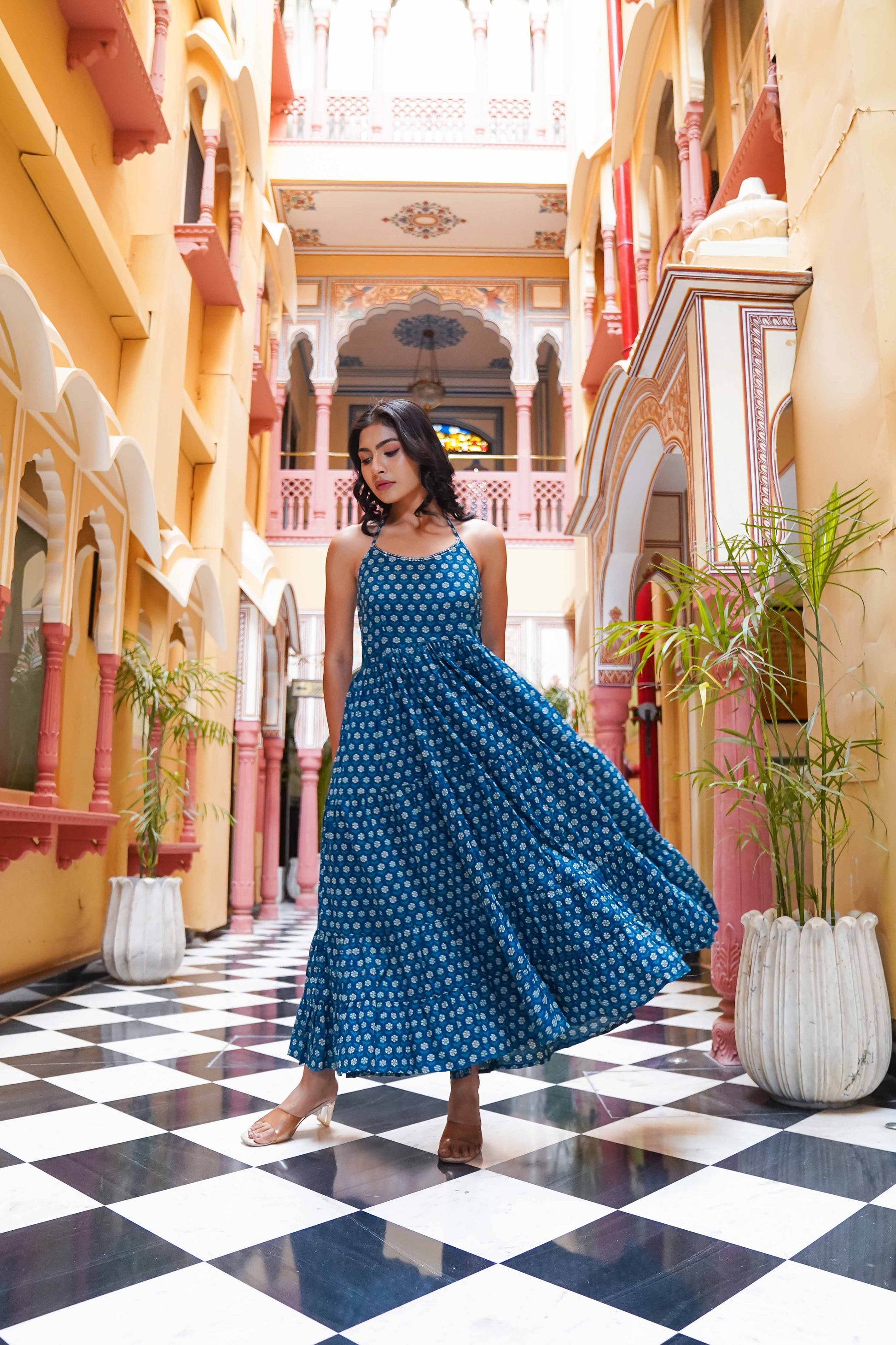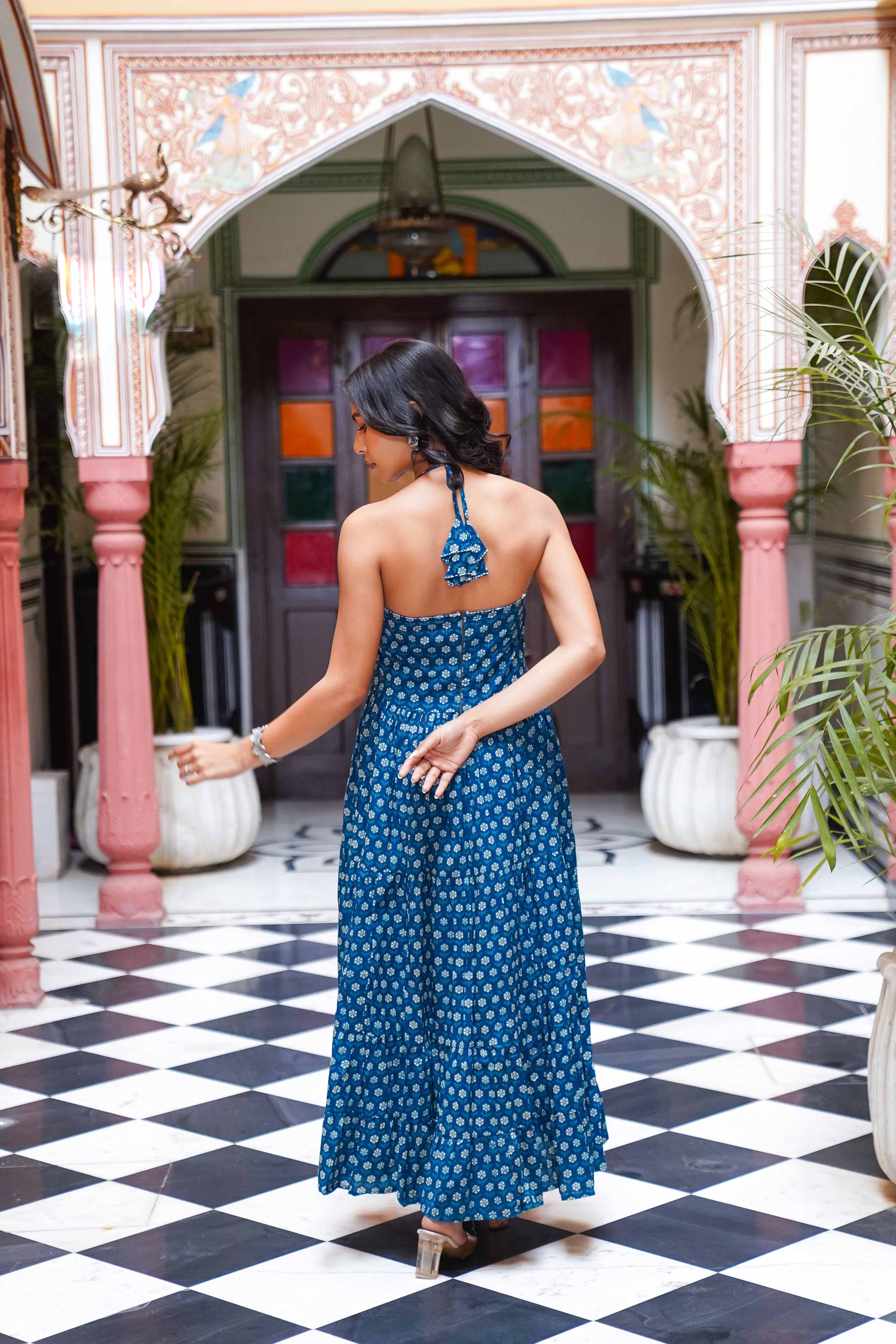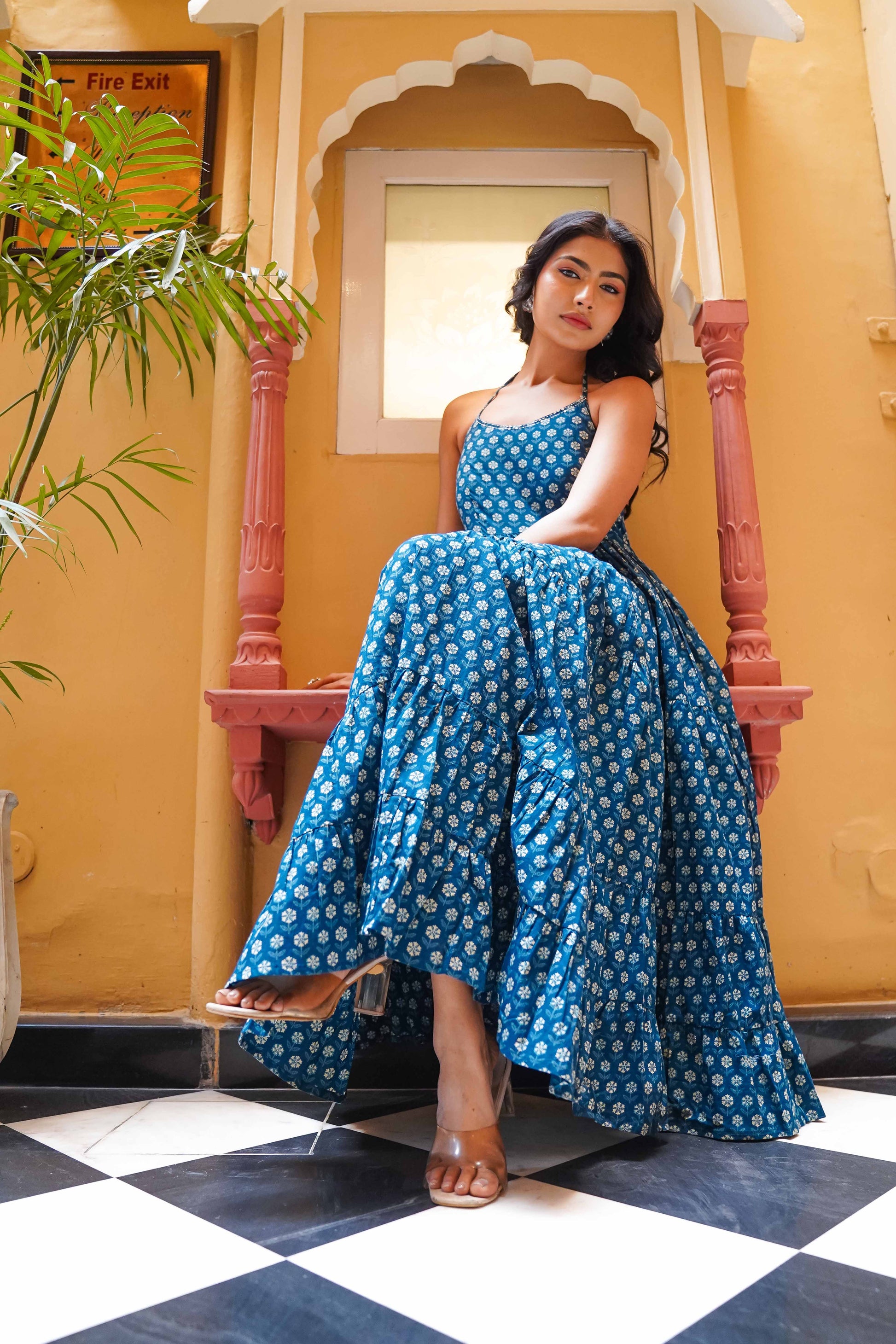Noorie is a halter neck dress designed with a flattering 3-tier silhouette. Enhanced with delicate thread hand embroidery, this piece flows beautifully and adds a touch of elegance to every step. Perfect for brunches, festive evenings, or effortless everyday style.