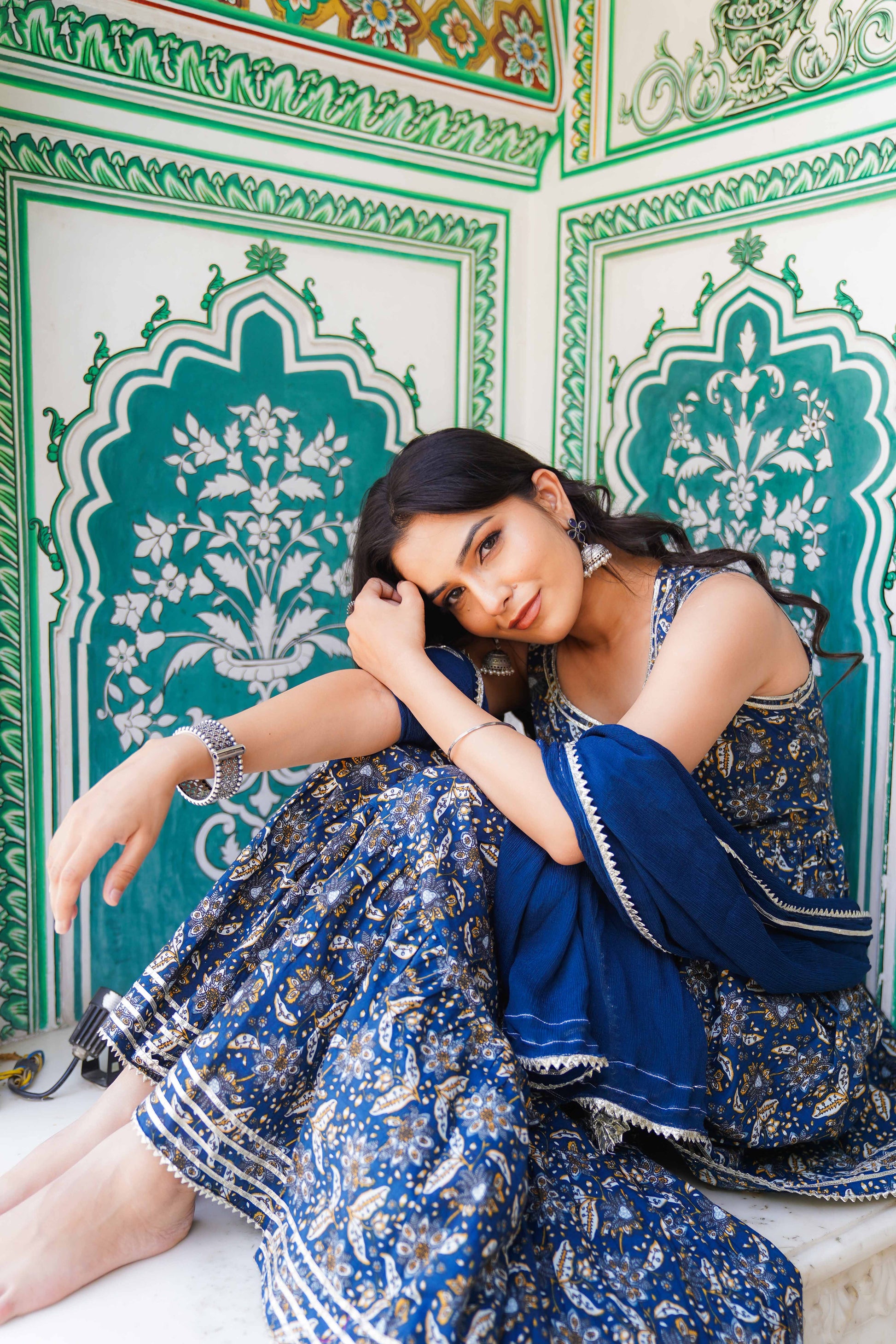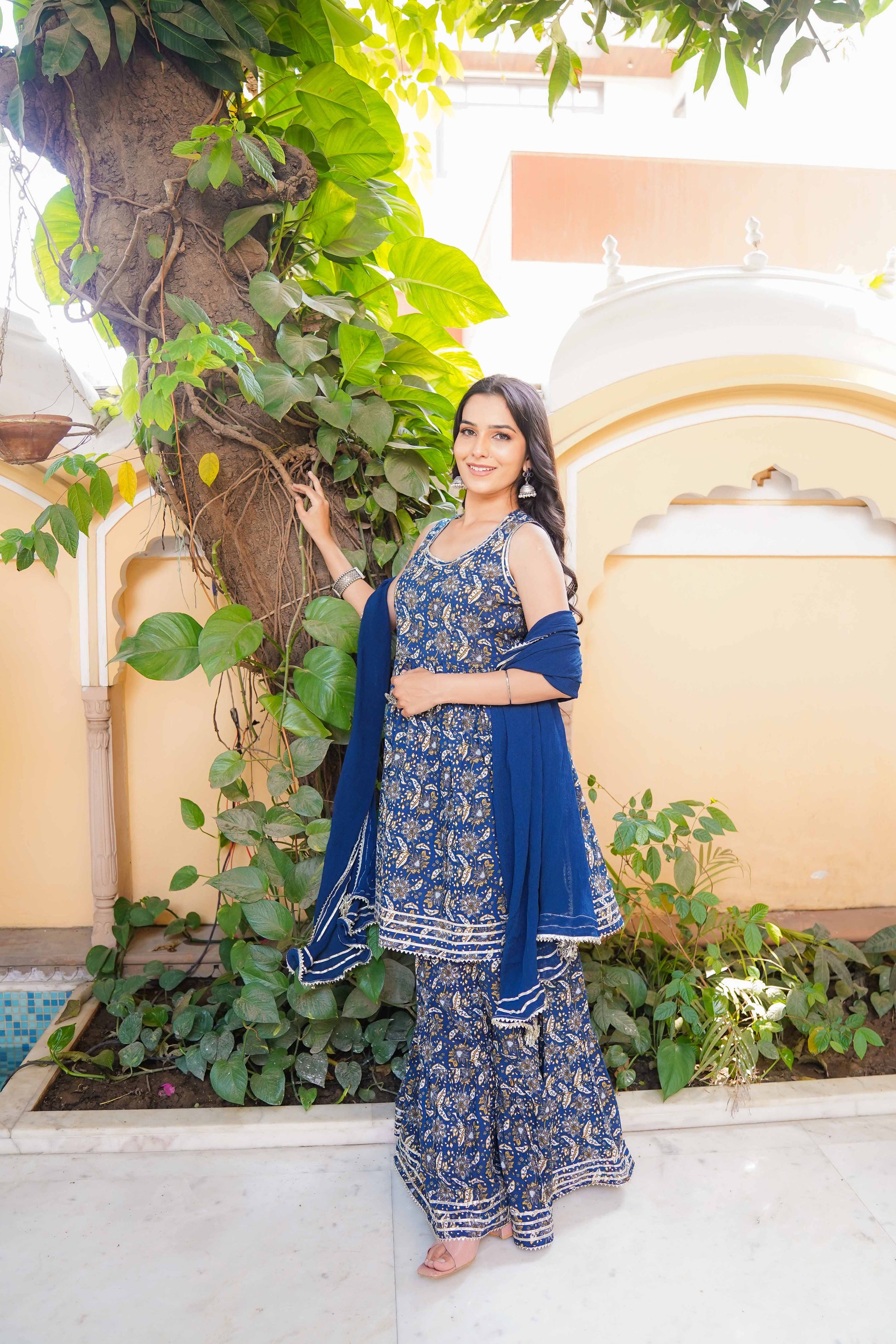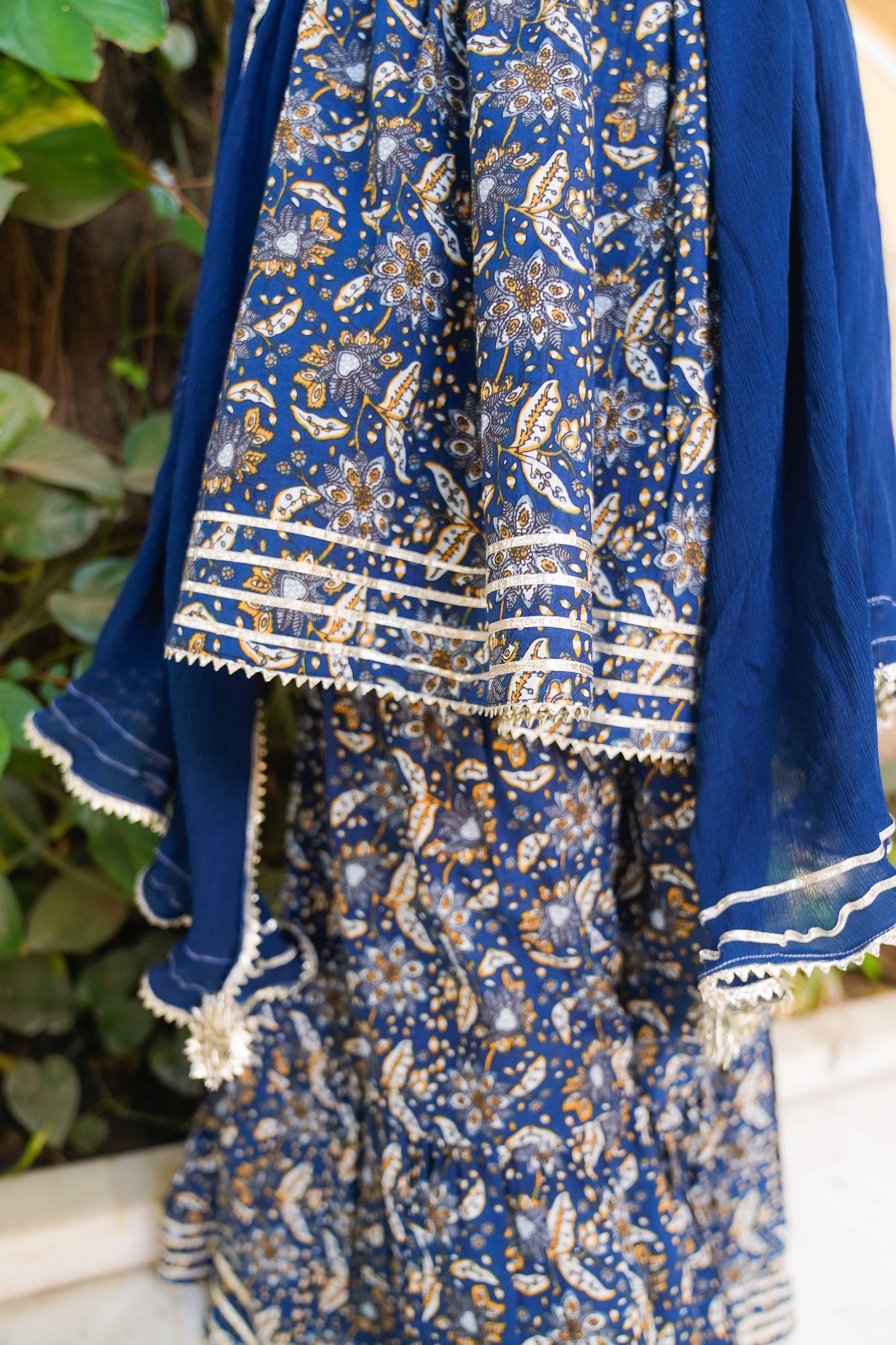 Fabric: 100% Cotton (kurta & sharara) with chiffon dupatta