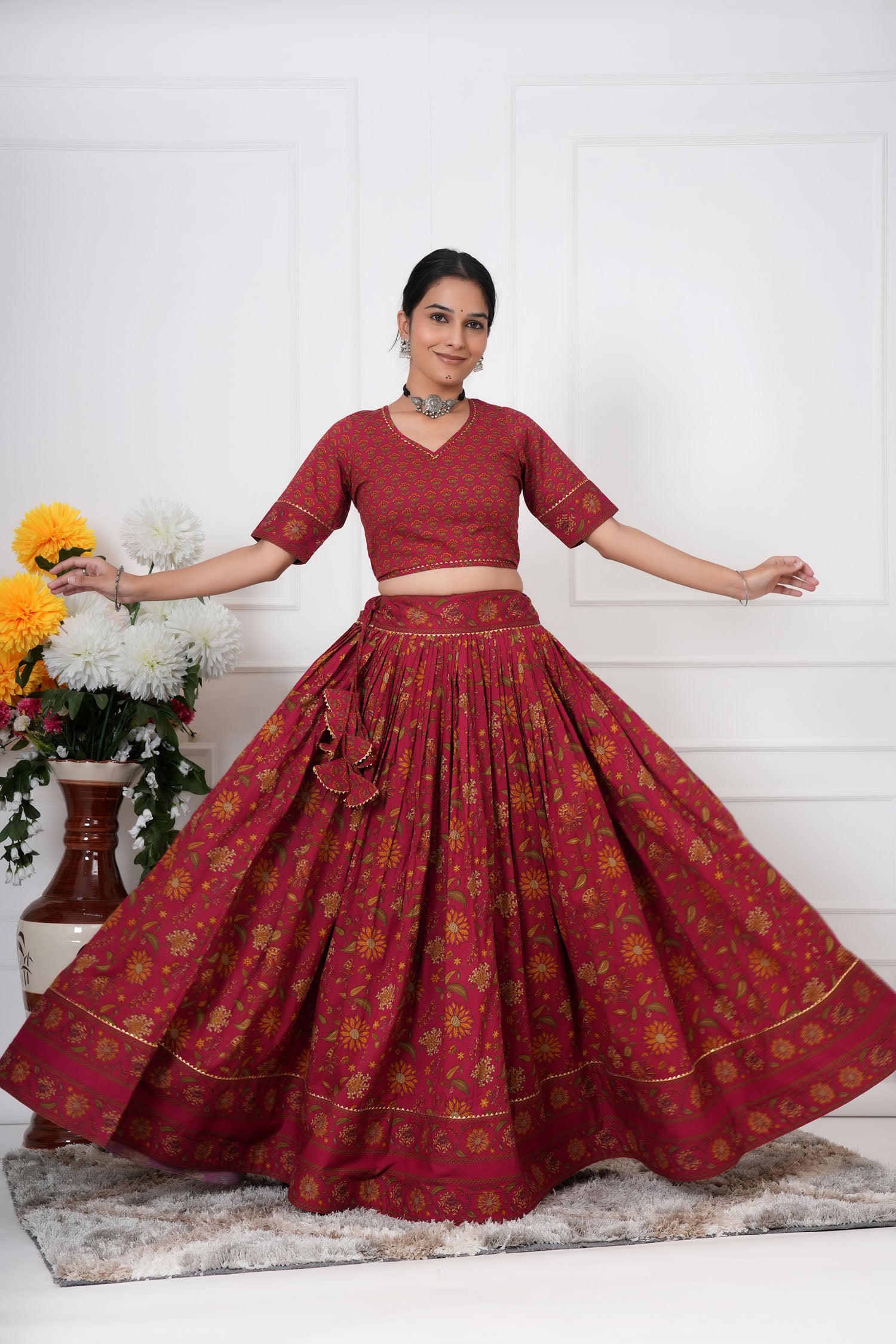 Design: Gathered lehenga with 3/4th sleeve blouse